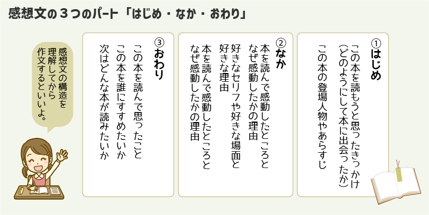 感想文の構成は、3つのパーツに分けて書いていくといいです。