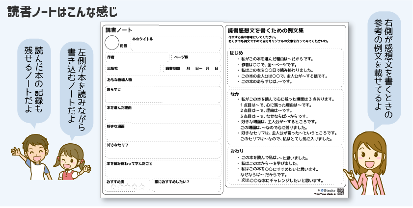 読書ノートは、感想文を書くための下書きメモのように使えればと思って作りました。