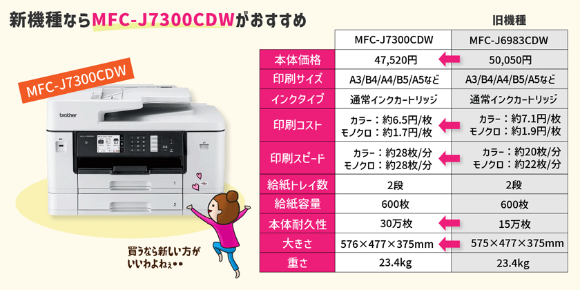 - 新機種を買うなら、MFC-J7300CDWかMFC-J5800CDWがおすすめ