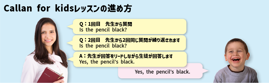 メインのパートでは、講師が質問を2回繰り返し、生徒が質問に対して回答します。