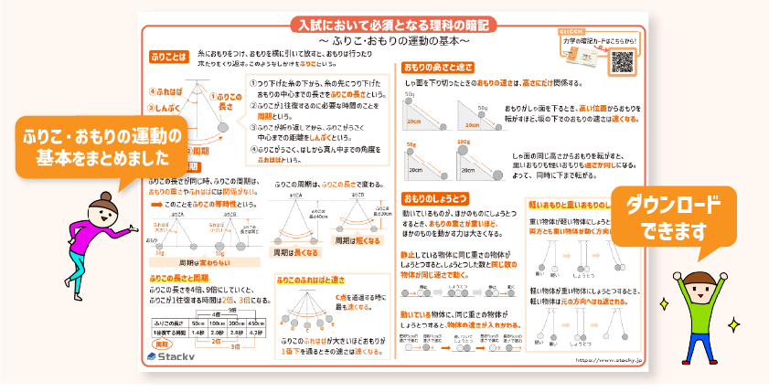 ふりこ・おもりの運動 チートシートのダウンロードはこちら(無料)