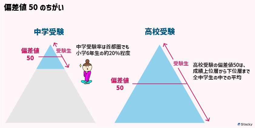 偏差値50は「全体の中での真ん中」ではなく、選抜された層の中での“平均”なのです。