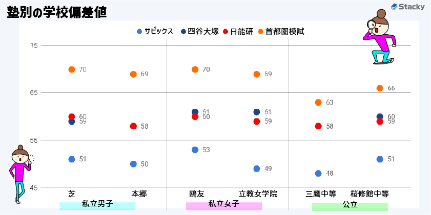 同じ学校でも、塾によって偏差値の数値は大きく異なることがあります。