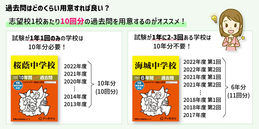 わが家では志望校1校あたり10回分(2回/年×5回)の過去問を用意することにしました。