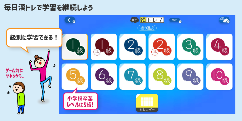 1級まで収録されていますから、先取り学習がどんどんできるのも魅力ですね。