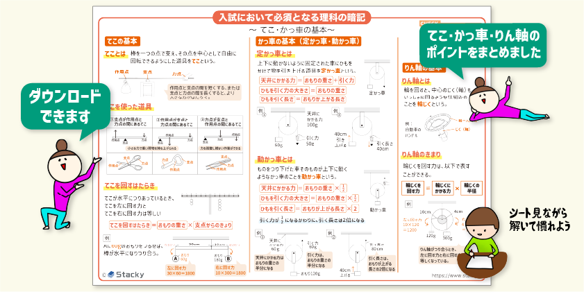 てこ・かっ車 チートシートのダウンロードはこちら(無料)