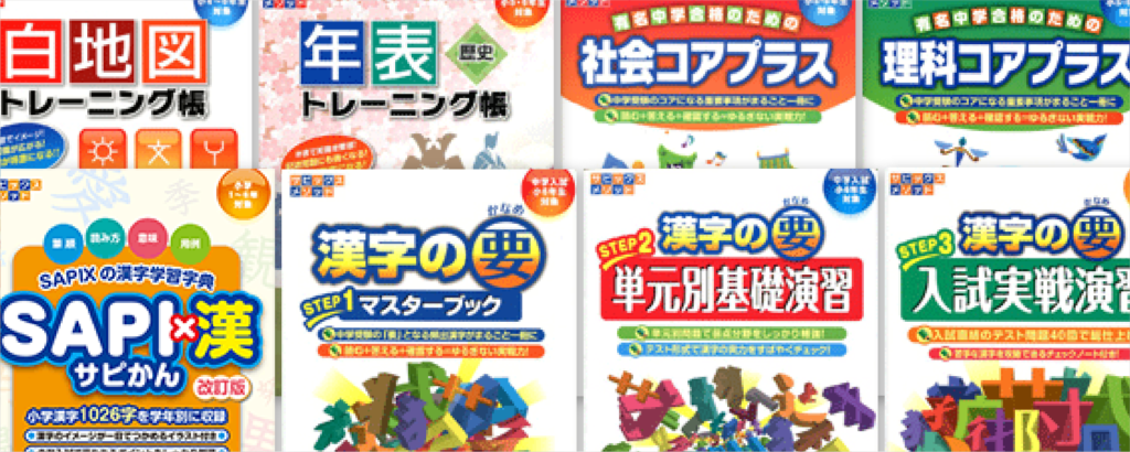 これらの教材は、SAPIXが監修した問題集や参考図書で授業との親和性も高いです。