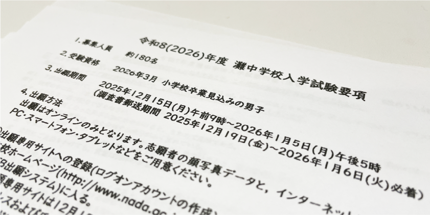 灘中学校の入試は、12月中旬からWEB出願システムを通じて受付が始まります。