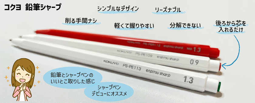 • 使うなら0.9mmか1.3mmの鉛筆シャープを選ぶのが安心