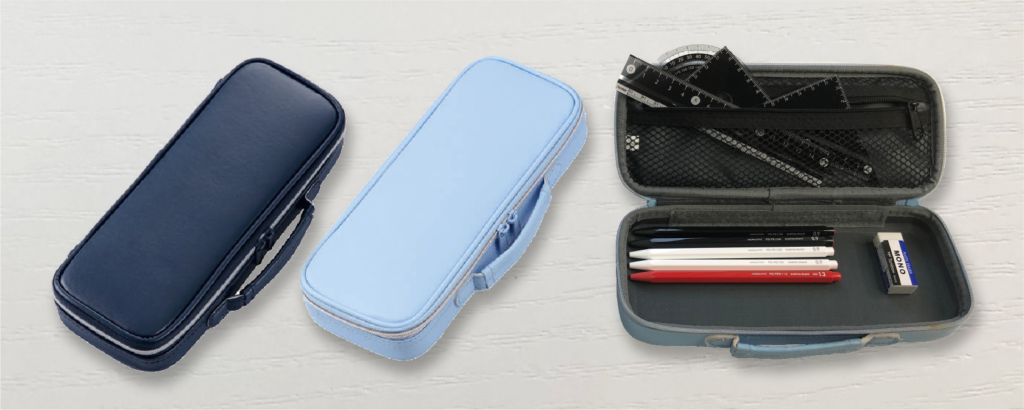 筆記用具、定規、コンパスなど必要なものが収納できる優れものです。