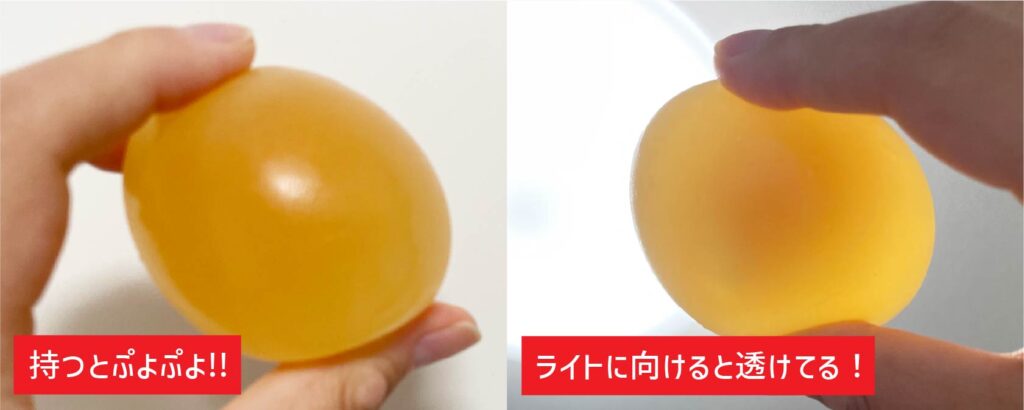 だんだんとたまごの殻が溶けてぷよぷよになってきます。