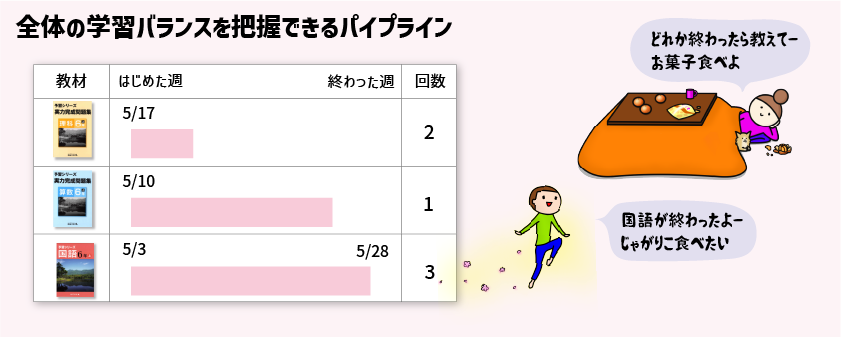 また、日々の教材の対応に目を向けると学習全体のバランスが崩れてしまうこともあります。
